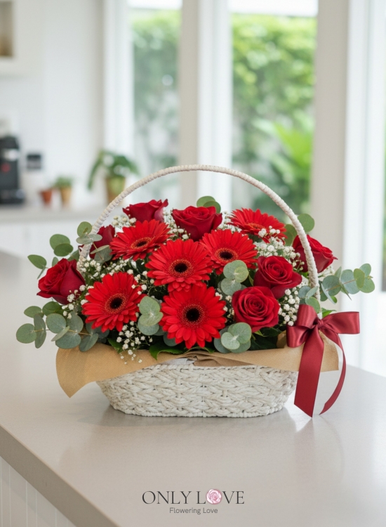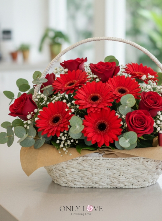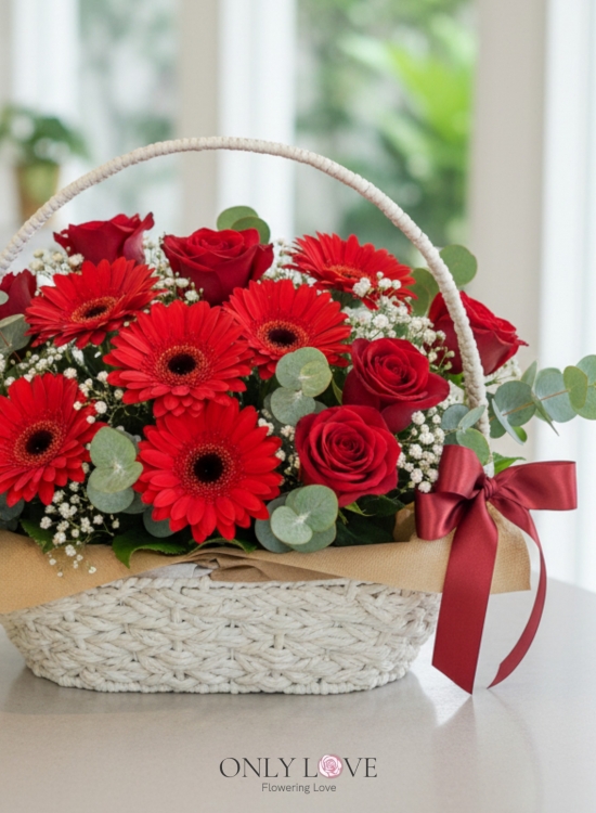 B17 Rose & Gerbera Flower Basket