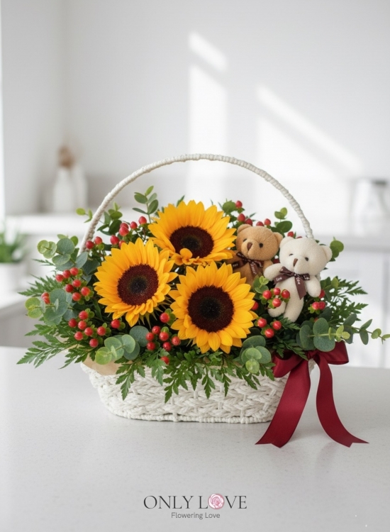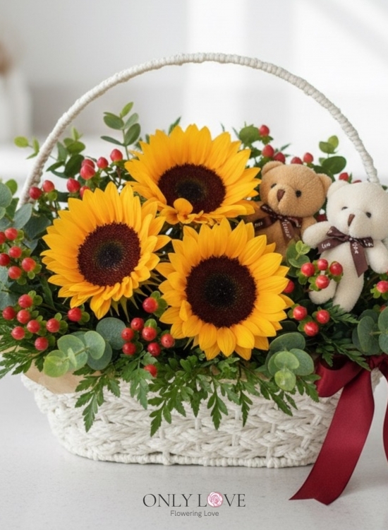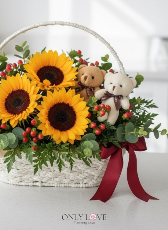 B22 Sunflower Teddy Bear Flower Basket View larger