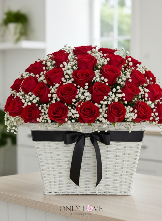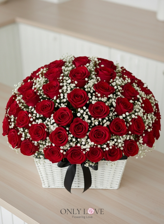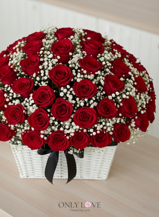 B71 50 or 99 Stalks Roses Flower Basket