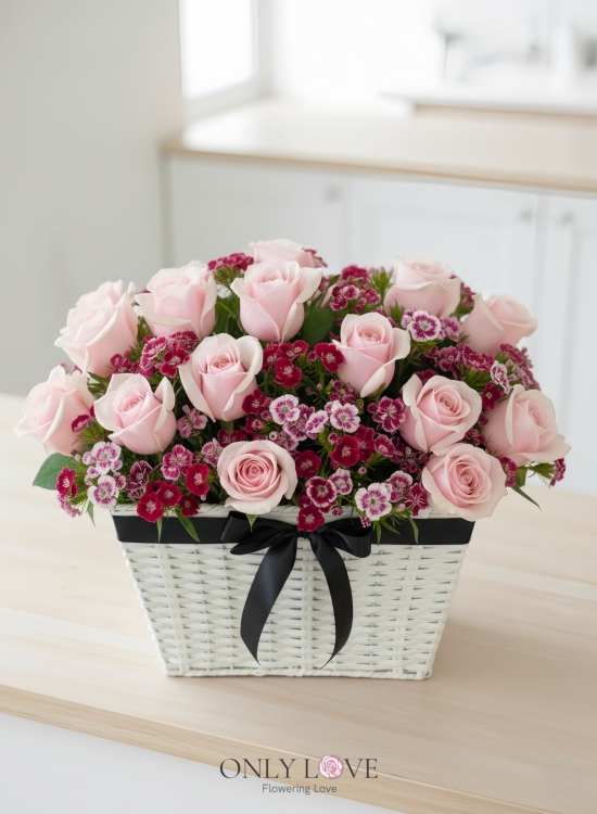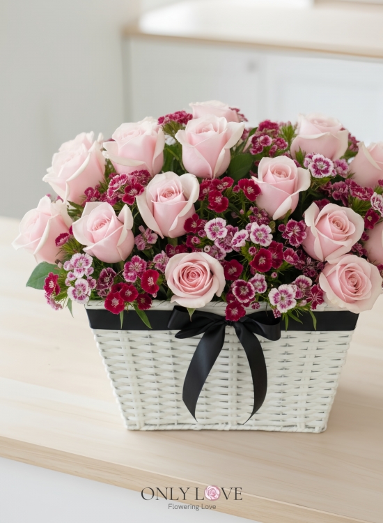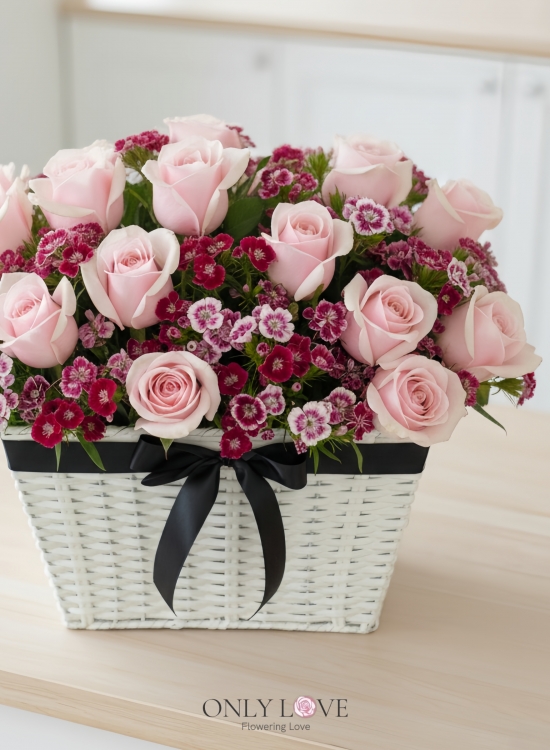 New Reduced price! B75 Roses & Sweet William Flower Basket View larger
