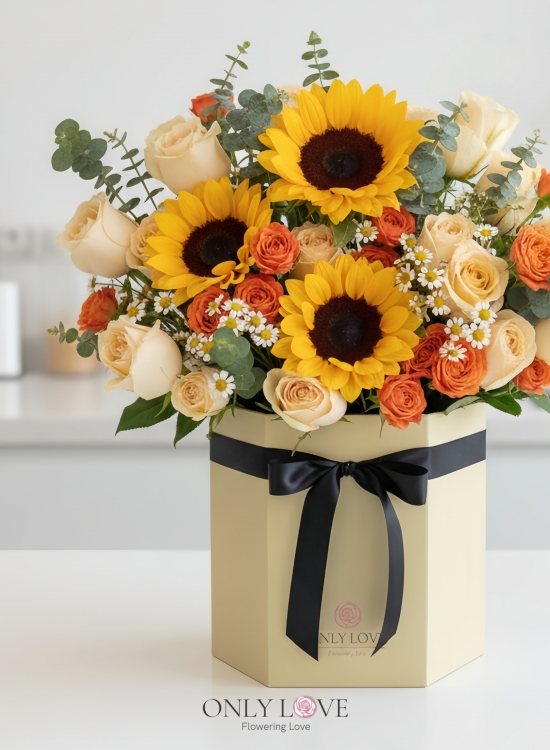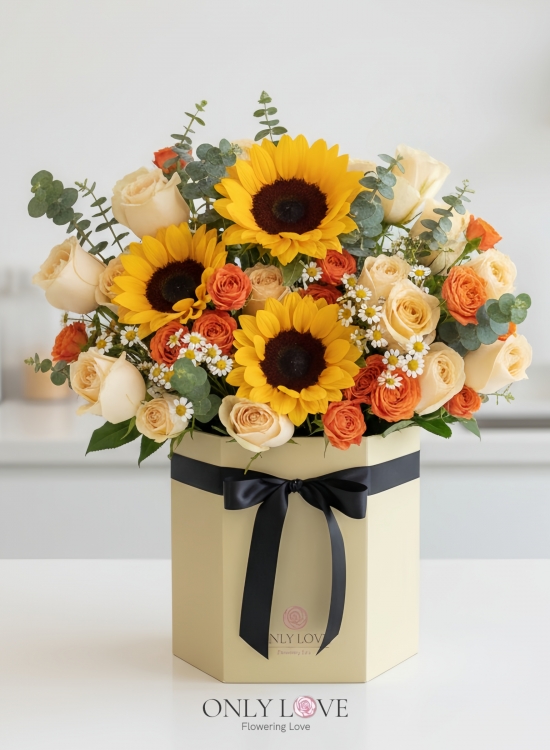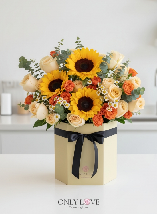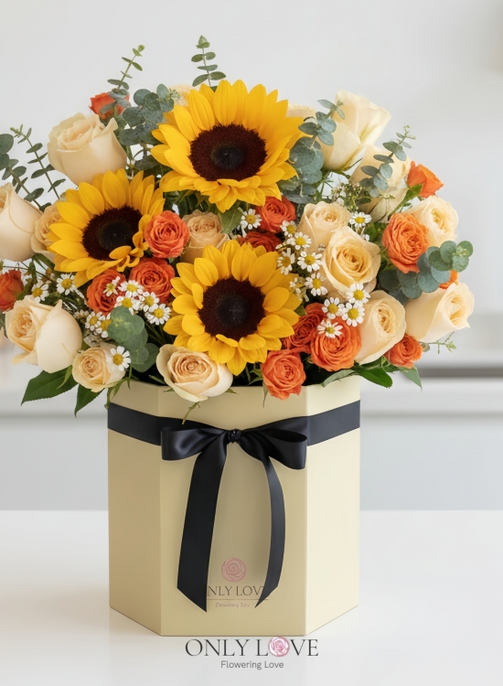BB116 Sunflowers Roses Flower Bloom Box