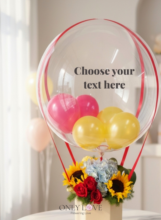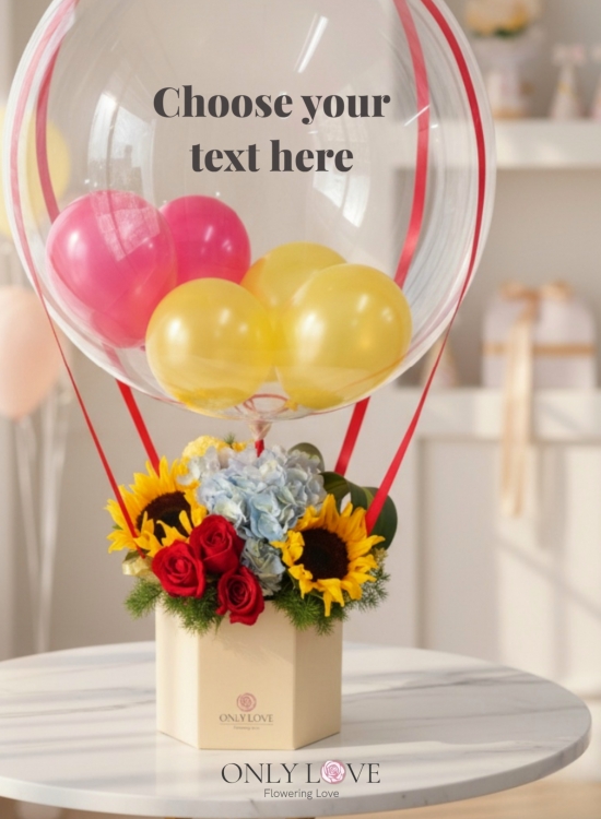 12 Stalks Roses, 1 Stalk Hydrangea, 5 Stalks Sunflower, 6 Stalks Ping Pong & Other Fillers.