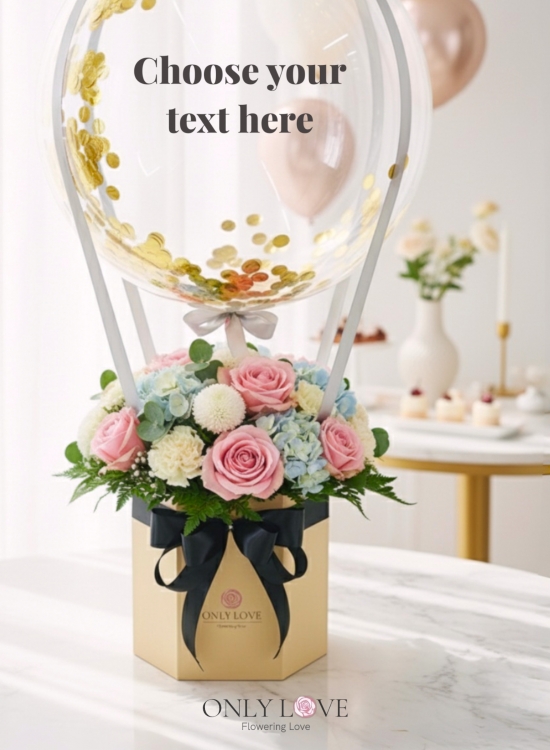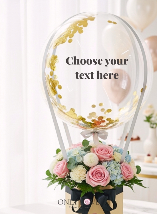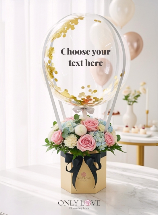 3 Stalks Roses, 3 Stalks Carnation, 3 Stalks Ping Pong, 1 Stalk Hydrangea, Eustoma, BabyBreath & Other Fillers