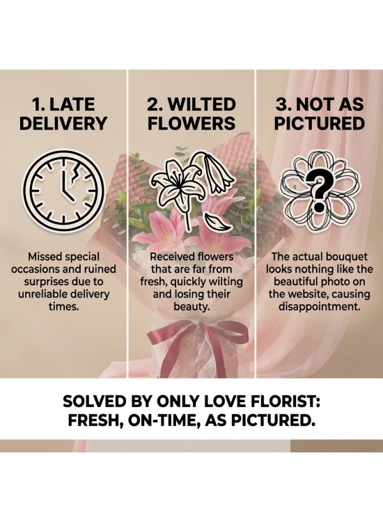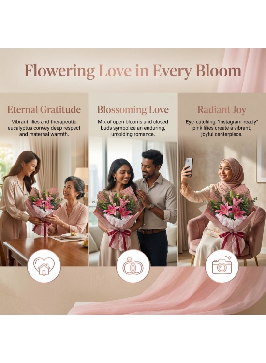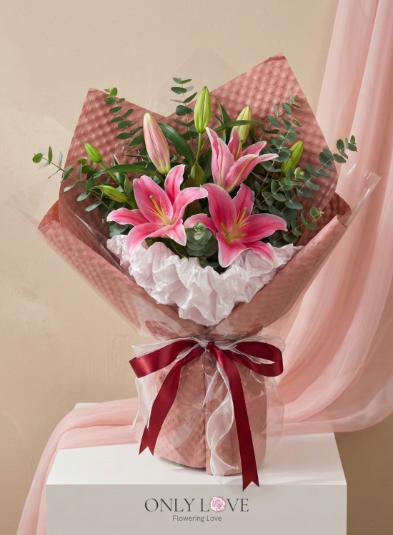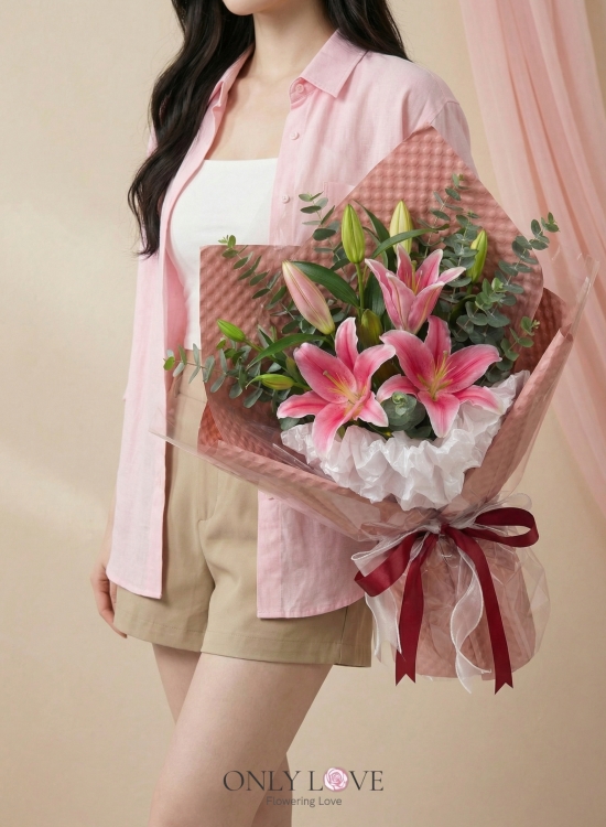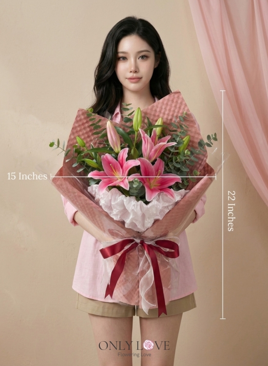* Lilies depend on supply availabilities if they arrive in closed bud form because it's fresh and long-lasting as it will take time to bloom. Pink lily's color tone may differ depending on the supplier.