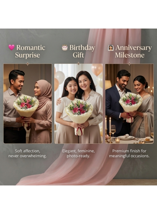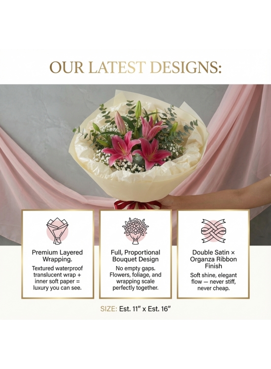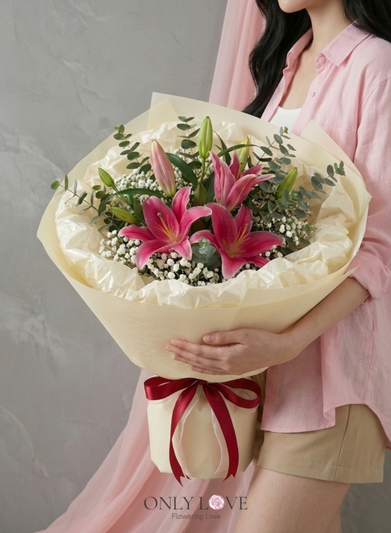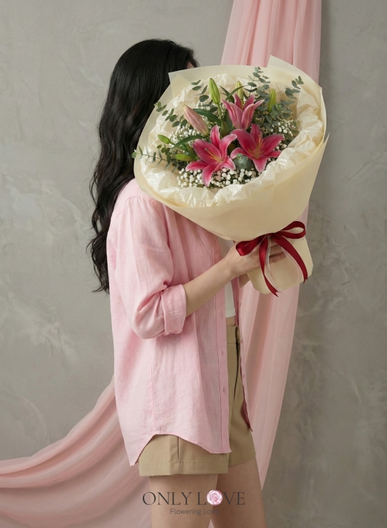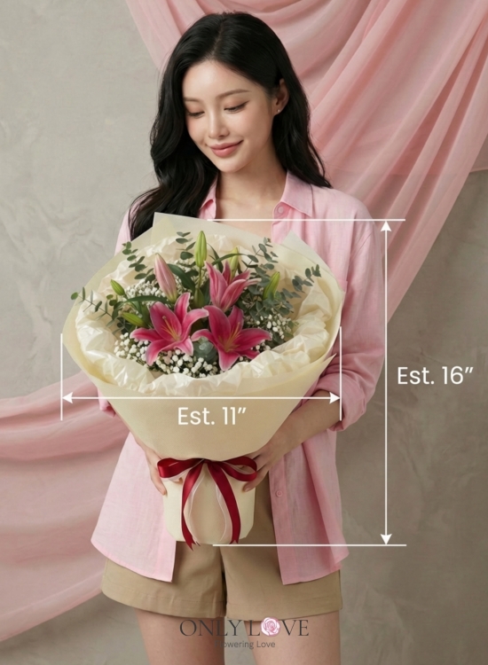 * Lilies depend on supply availabilities if they arrive in closed bud form because it's fresh and long-lasting as it will take time to bloom. Pink lily's color tone may differ depending on the supplier.