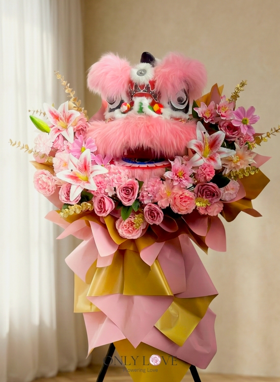 FS15 Lion Dance Artificial Flowers Wooden Stand