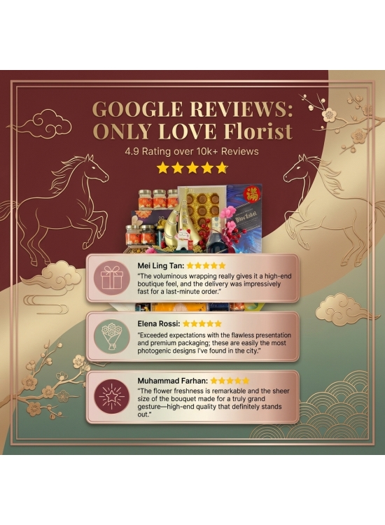 * For delivery in KL & Klang Valley, please place your order at least 3 working days in advance. For outstation delivery, courier services may take 5-7 days for postage progress. We reserve the right to substitute items of equal or greater value if, for any reason, those stated are unavailable at the time of dispatch.