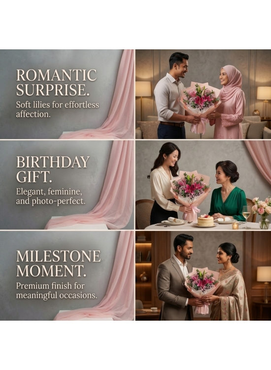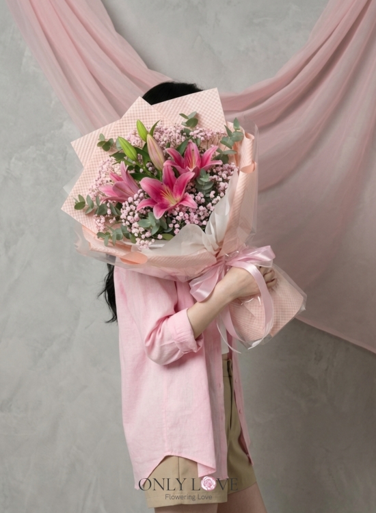 * Lilies depend on supply availabilities if they arrive in closed bud form because it's fresh and long-lasting as it will take time to bloom. Pink lily's color tone may differ depending on the supplier.
