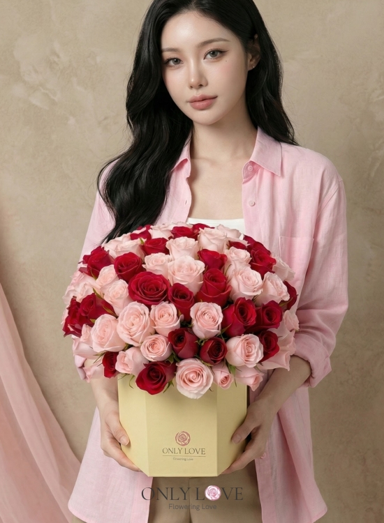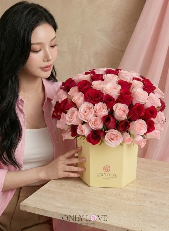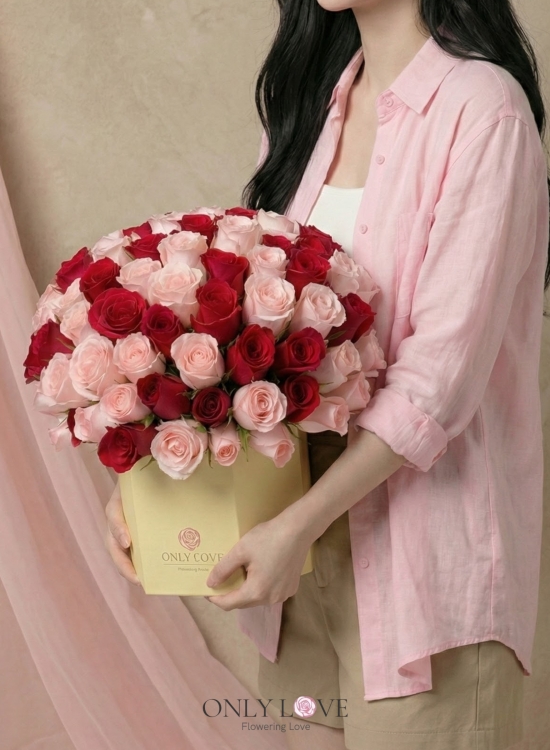 VT042 Enchanted Blush 50 or 99 Imported Roses Bloom Box